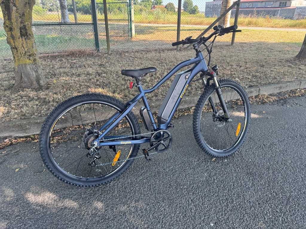 Eleglide Mopride 3 är konstruerad med ett robust aluminiumchassi och 29” x 2.4” däck som erbjuder utmärkt stabilitet och komfort – särskilt för längre förare (165–200 cm). Den generösa ramstorleken (29” x 19”) och det breda styret (720 mm) gör att cykeln känns både rymlig och responsiv, oavsett om du cyklar på asfalt eller grusväg.
