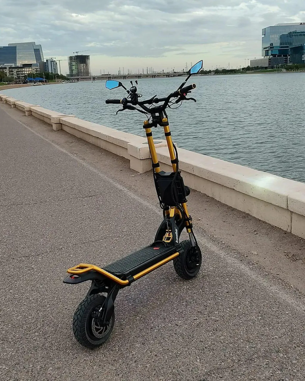Jag är riktigt imponerad av Kaabo Wolf King GTR Max — det här är inte bara en elscooter, det är en fullständig körupplevelse! 🚀 Den accelererar sjukt snabbt tack vare de dubbla 2000 W-motorerna och känns stabil och trygg även när du gasar upp mot toppfarten på runt 105 km/h — helt galet för en scooter!